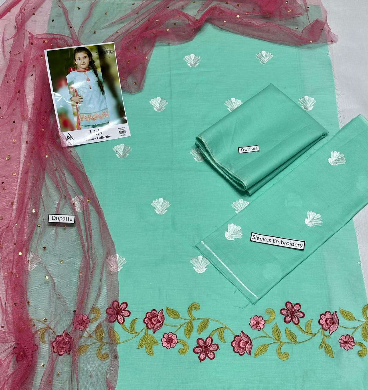 Give your child a stylish summer look with the Maria b kids 3 peace lawn suit, designed with premium Dhank quality lawn for maximum comfort in Pakistan’s hot weather. This unstitched 3-piece set features elegant embroidery and trendy patches, making it perfect for daily wear, family gatherings, and festive occasions.
