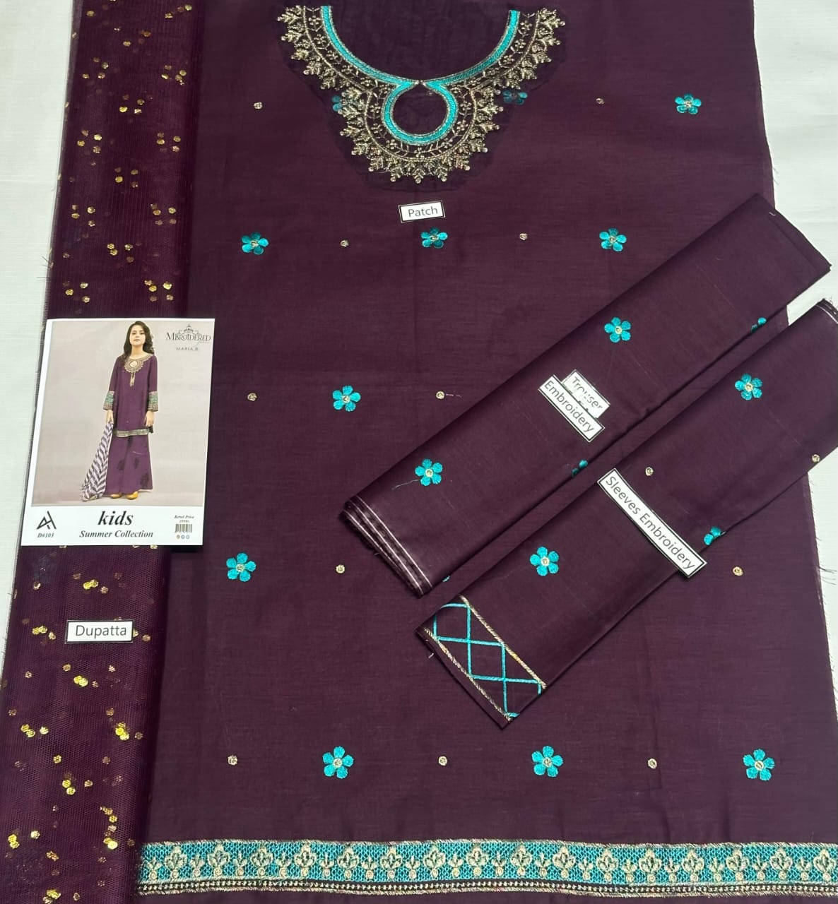 Maria B Kids 3 Peace Lawn Embroidered Unstitched Suit DD-10